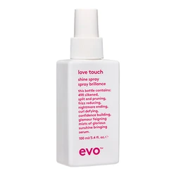 Say hello to gorgeously glossy hair with Evo Love Touch Shine Spray (100ml). The weightless formula adds weightless shine. Helps to protect from humidity and fight frizz without collapsing styles. Recommended for all hair types.